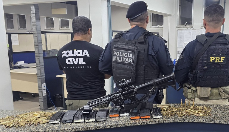 A Polícia Rodoviária Federal (PRF) apreendeu um fuzil, carregadores e centenas de munições, na sexta-feira (10), em uma ação conjunta com a Guarda Civil Municipal de Resende, com apoio das polícias militar e civil. O caso aconteceu em Resende, no Sul Fluminense, e resultou na prisão de dois homens.